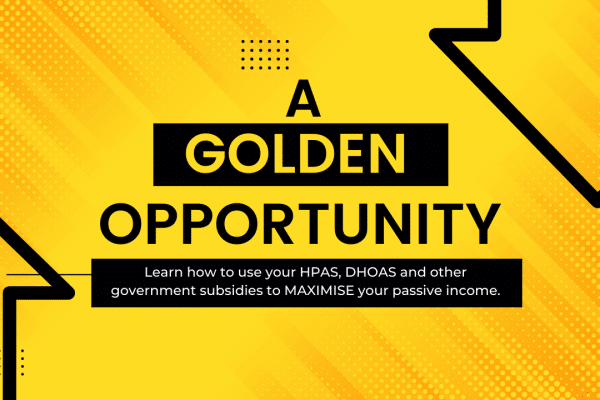 Learn how to use your HPAS, DHOAS and other government subsidies to MAXIMISE your passive income. Here is a quick lesson you might have missed, how the rich get rich – create a passive income. Join our next webinar. Register here.