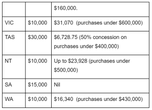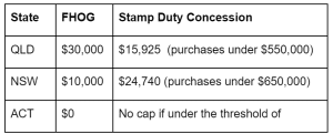 FHOG and stamp duty concessions by state/territory